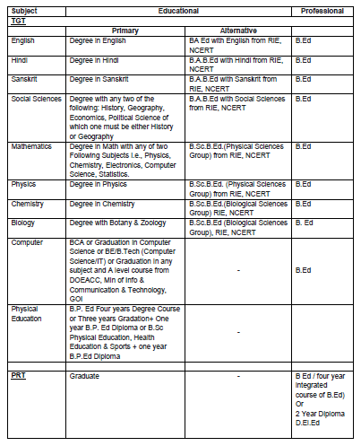 - Graduate Trained Teachers (TGT): Graduation (B.Ed)