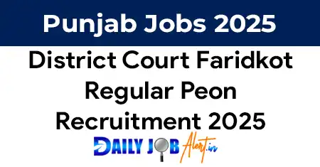 Online applications are invited by District and Session Court Faridkot. Office of the District Sessions Judge, Faridkot released the notification on 09 June 2025 for the Peon posts on Regular basis. Interested candidates Can Apply for District Court Faridkot Recruitment 2025 posts. Candidates can apply offline by downloading, filling and submitting the application form in the office. Apply For District Court Faridkot vacancies 2025. Candidates can apply before 27 June 2025 upto 5 PM.
