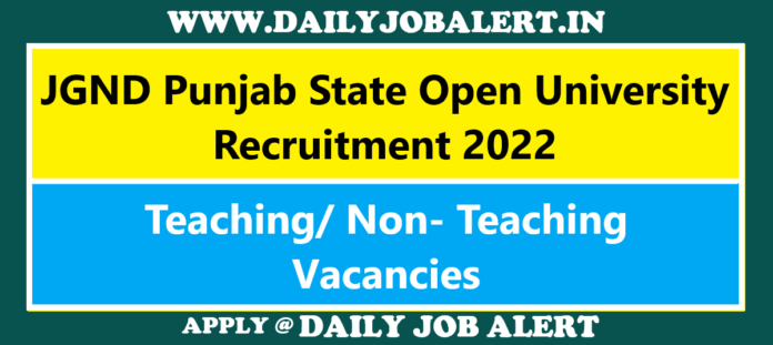 Details About JGND Punjab State Open University Recruitment 2022: