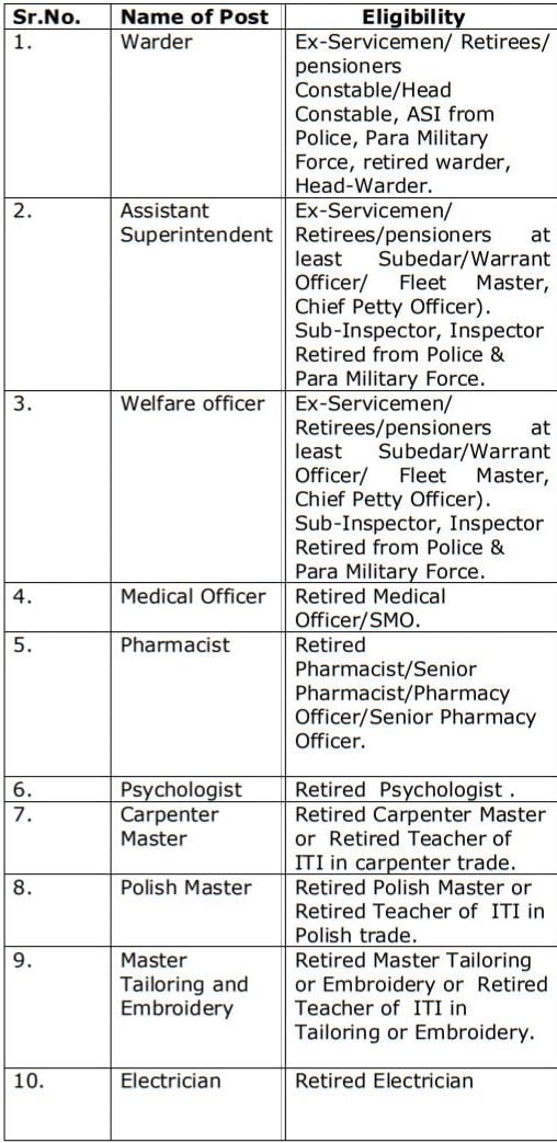 Eligibility Criteria For Model Jail Chandigarh Recruitment 2021 :
