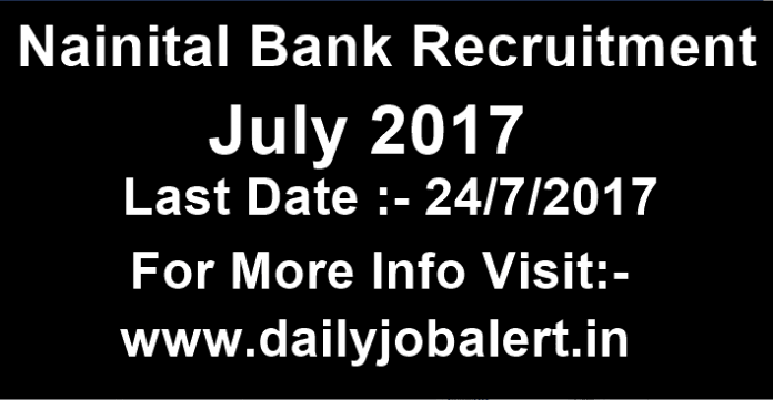 The way to Apply Online: Eligible candidates May Apply From the website www.Nainitalbank.Co.In from 04-07-2017 to 24-07-2017.