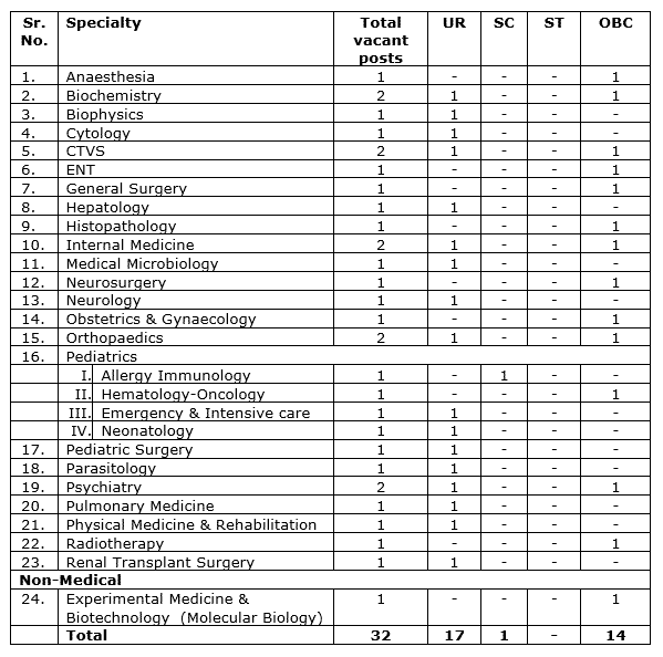 I. Professors: Total Posts – 32 (UR-17, SC-01 & OBC-14).