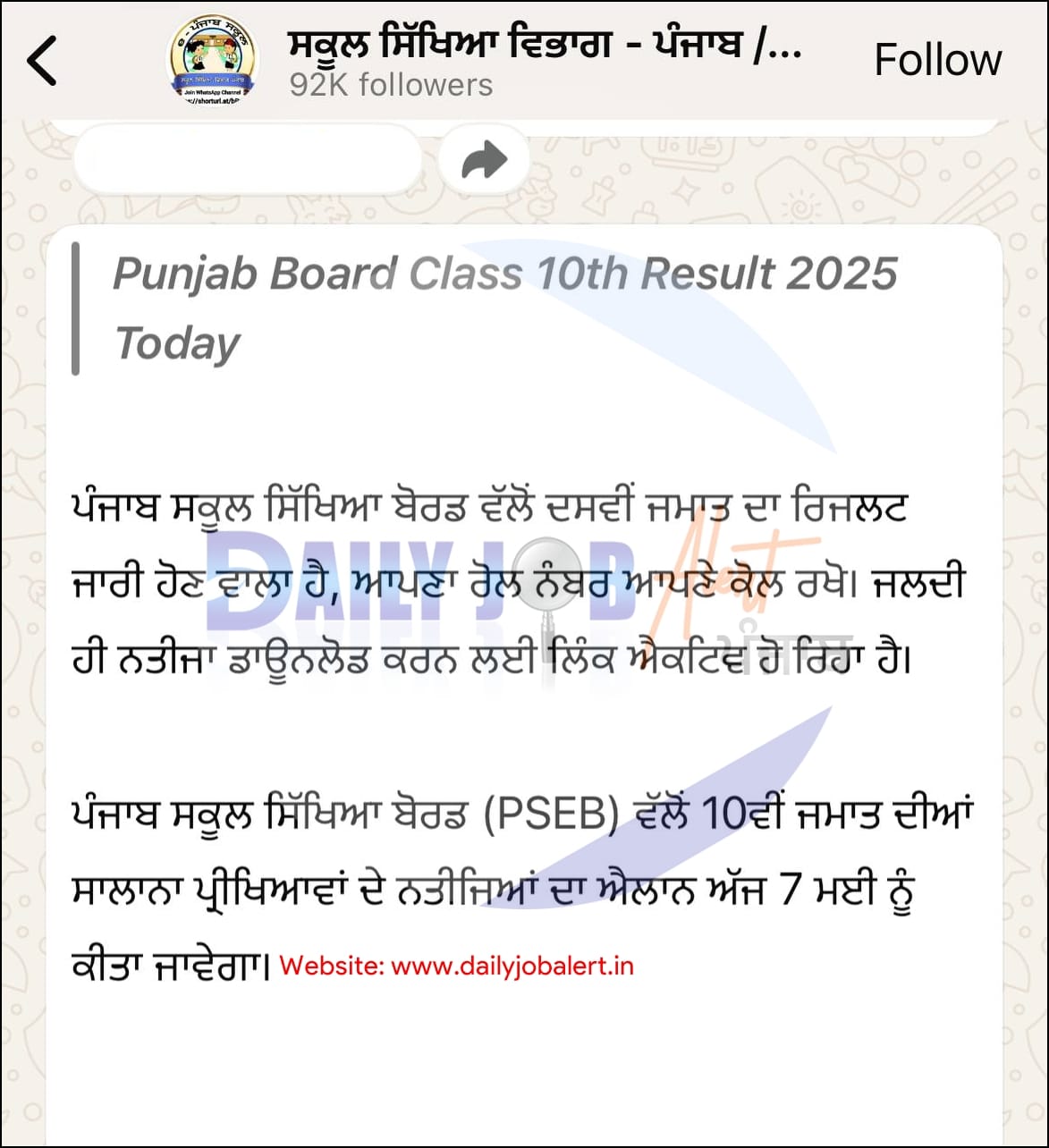 Note: Keep checking the official PSEB website (pseb.ac.in) for the exact PSEB 10th Result Date 2025 and official notifications.
