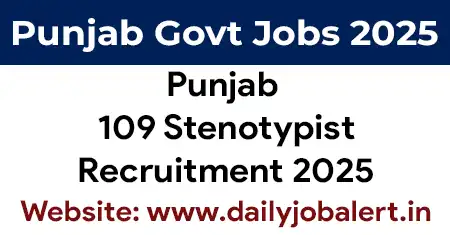 The notification for 109 Stenotypist in various Punjab Govt. departments is released on 28 November 2025.
