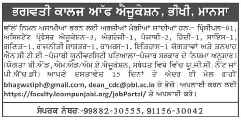 | Jobs in Mansa | Jobs in Moga | Jobs in Sri Muktsar Sahib |