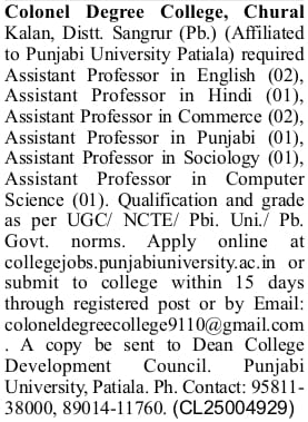 Govt Jobs in Punjab for candidates who completed 10th, 12th, ITI, diploma, engineering. Search and apply for ਪੰਜਾਬ ਸਰਕਾਰ ਦੀਆਂ ਨੌਕਰੀਆਂ Govt Jobs in Punjab that are related to your qualification. Newly announced Govt Jobs in Punjab first on Dailyjobalert.in with job description and eligibility criteria.