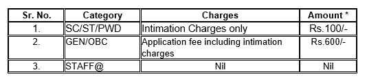 APPLICATION FEE AND INTIMATION CHARGES FOR BOTH:
